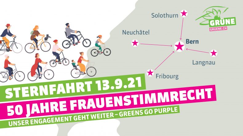 Mit einer Velosternfahrt setzen wir ein Zeichen für die Gleichstellung. Denn trotz der Erfolge der Frauenbewegung in der Schweiz: Wir sind noch lange nicht am Ziel! Sei auch du dabei!