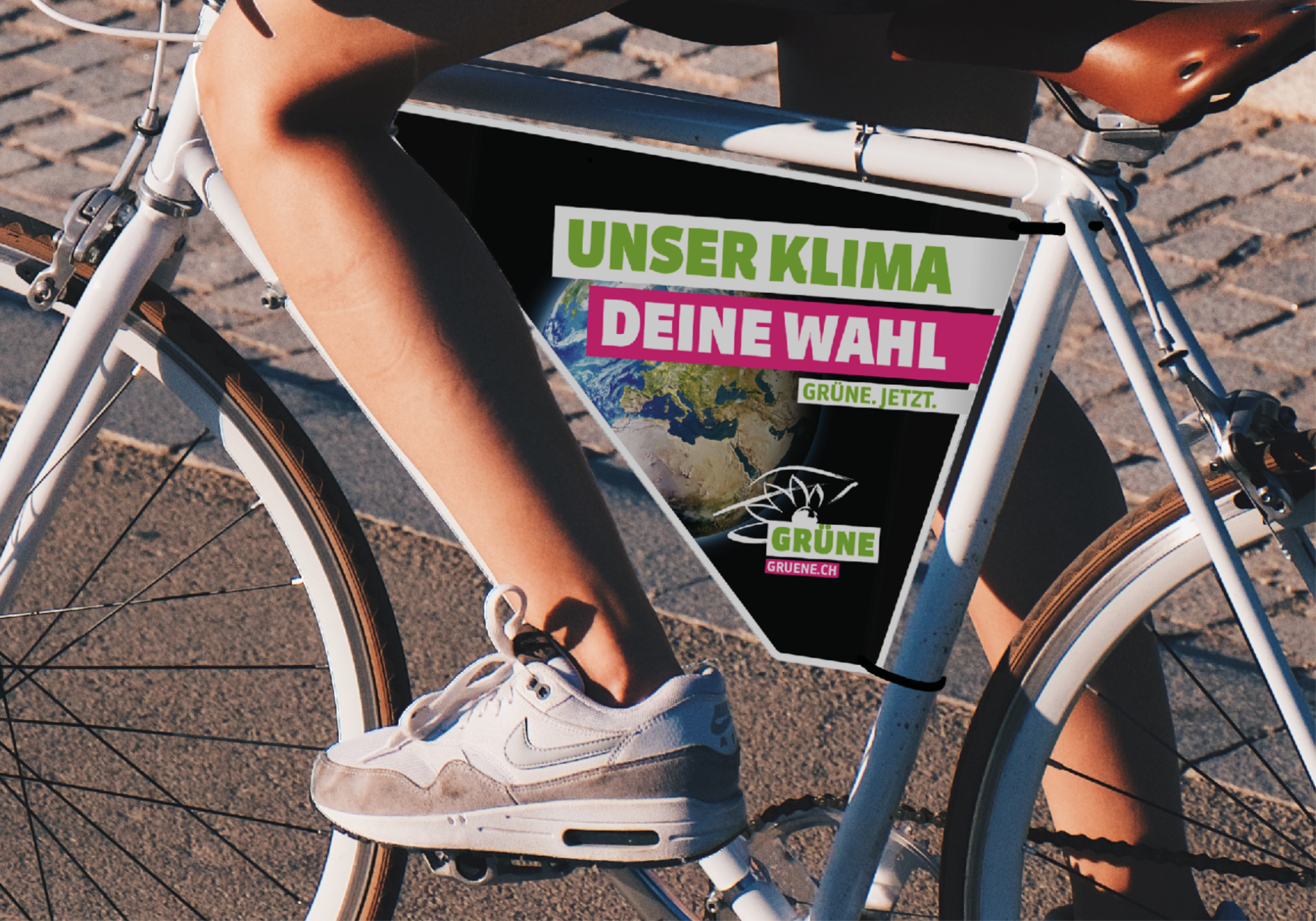 Verteile Flyer, hänge ein Velodreieck an dein Velo und motiviere so dein Umfeld GRÜNE zu wählen!